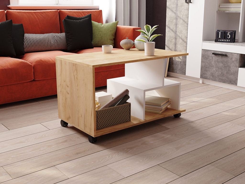 Стол журнальный СЖМ-1 дуб крафт золотой/белый