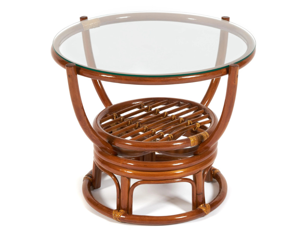 Материал: основание - натуральный ротанг (высший сорт), столешница - закалённое стекло.