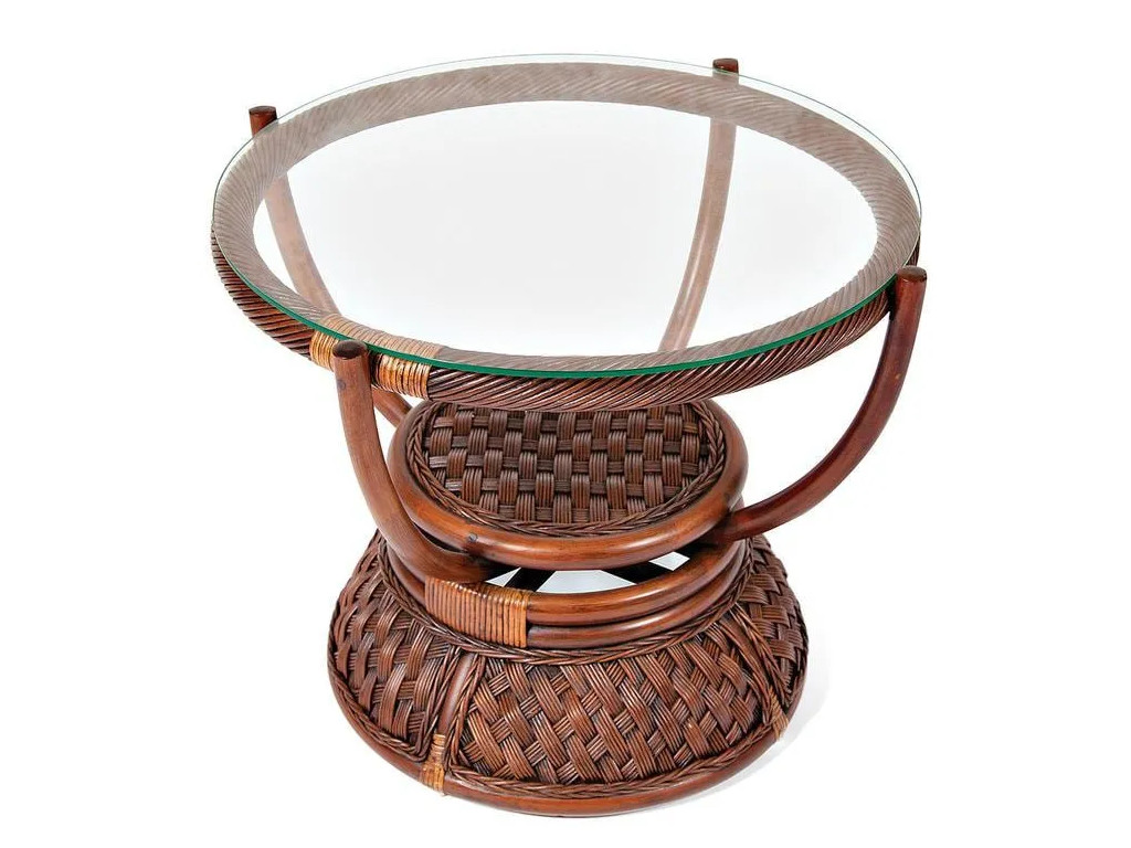 Материал: основание - Ротанг, столешница - закалённое стекло.