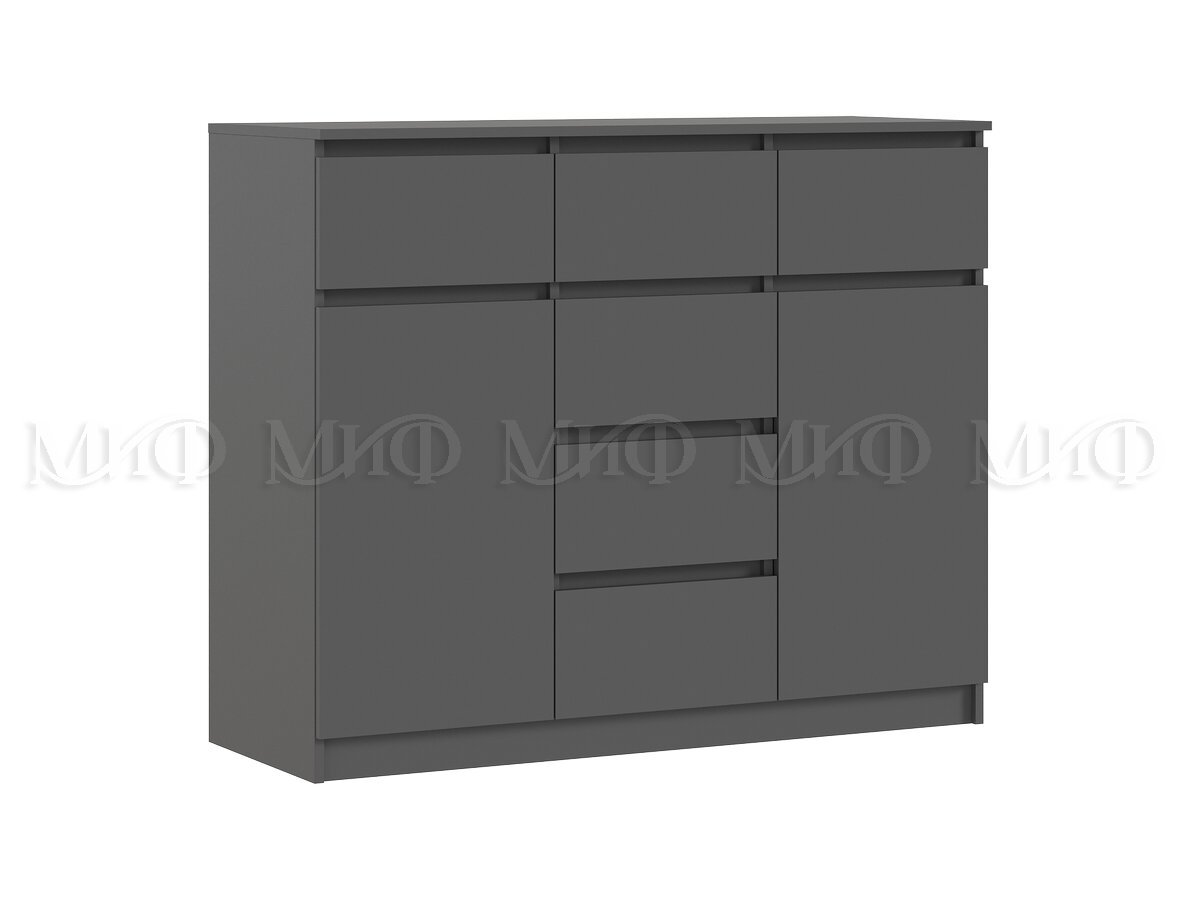 - Комод 1200 (2 двери 6 ящиков) Челси Графит