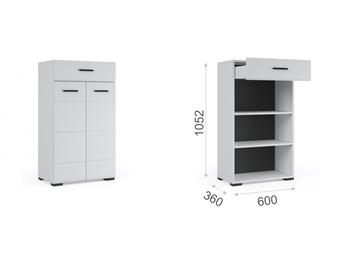 - Отделение с распашными дверями укомплектовано вместительными полками для коробок с обувью или сумок.