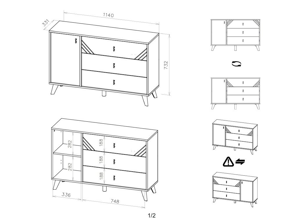 - Комод 3 ящика Байкал со створкой
