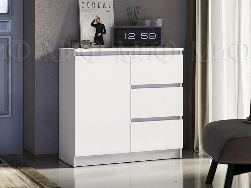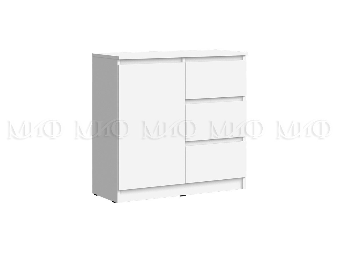 - Комод 800 3 ящика 1 дверь Челси белый
