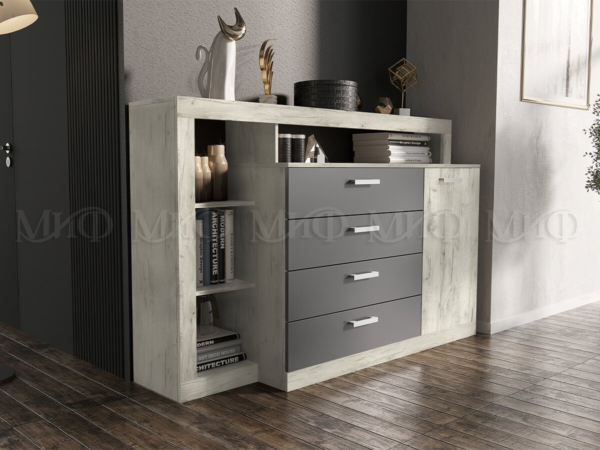 Комод Ангара Графит/Дуб Крафт Белый