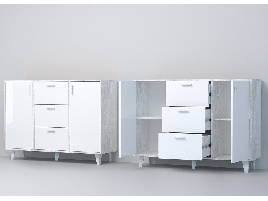 - Комод Эго К-2 2 ящика бетон светлый/белый глянец на ножках