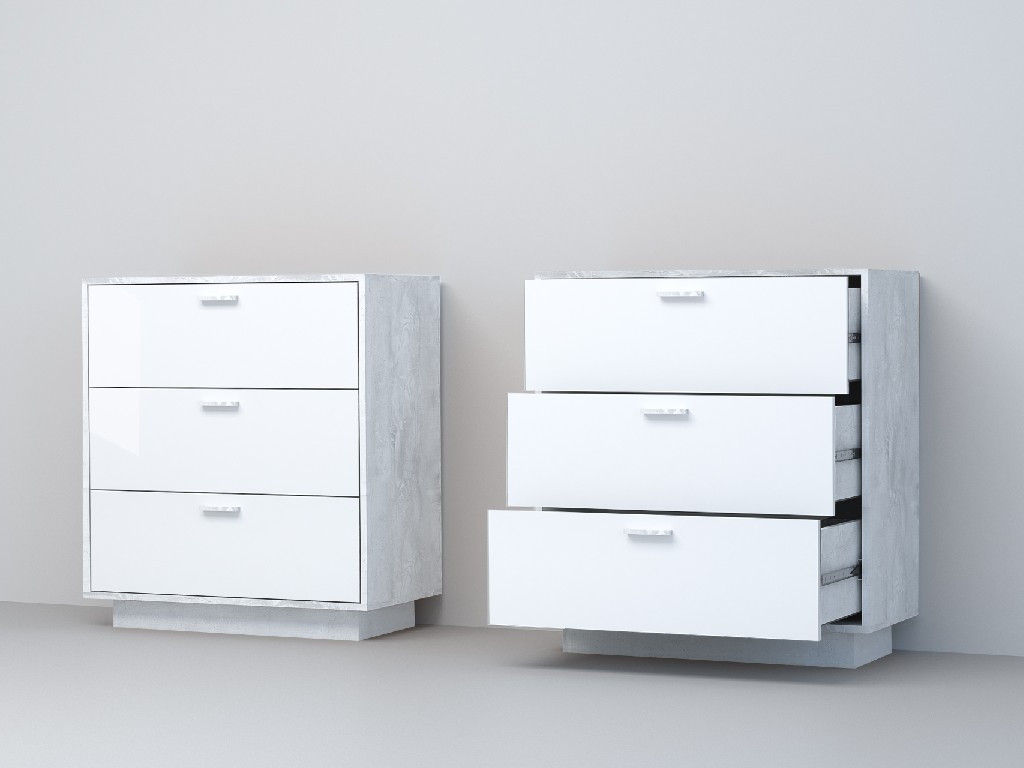 Комод Эго К-3 3 ящика бетон светлый/белый глянец на цоколе