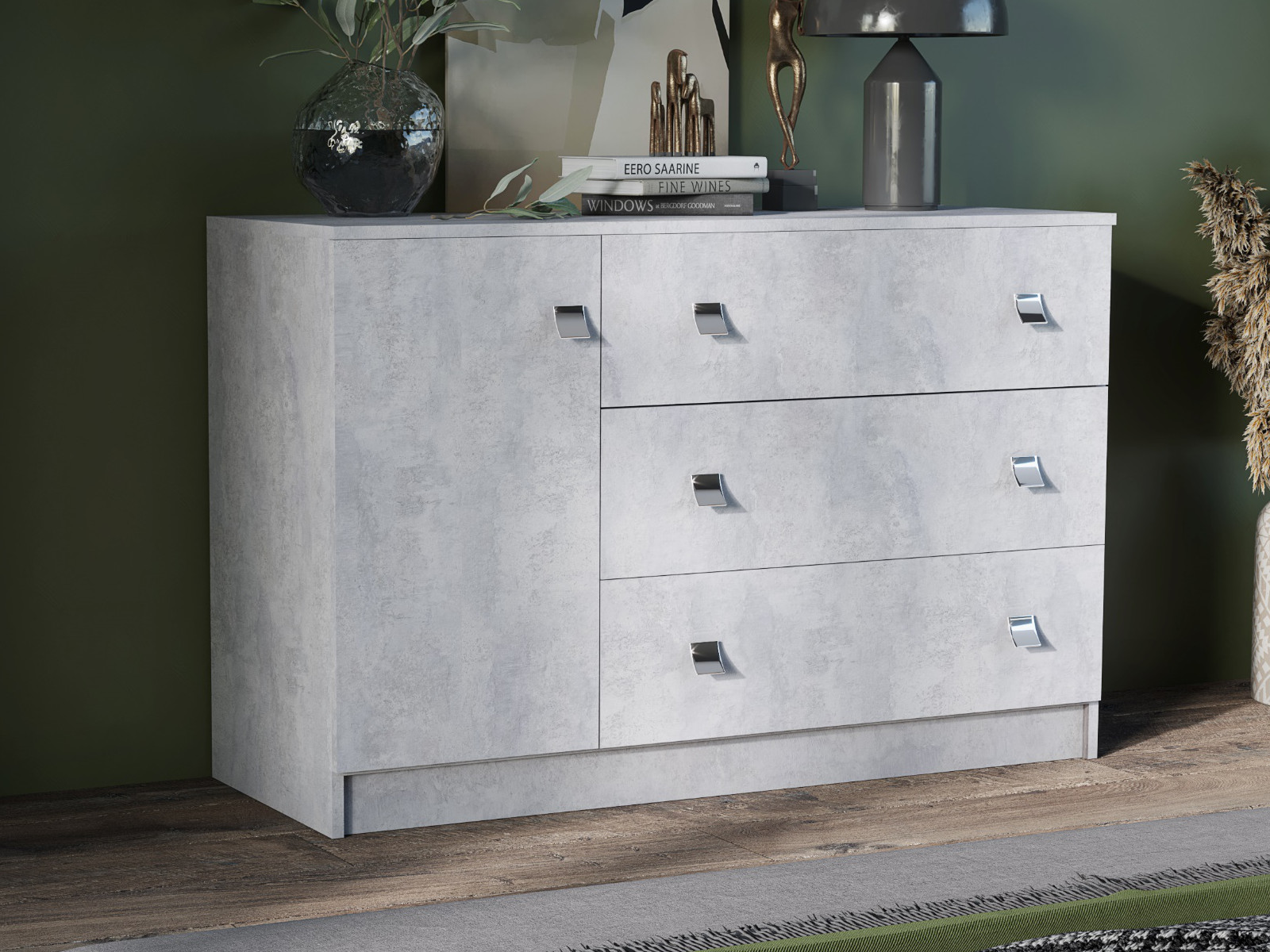 - Комод Лофт 3 ящика и 1 дверца цемент светлый