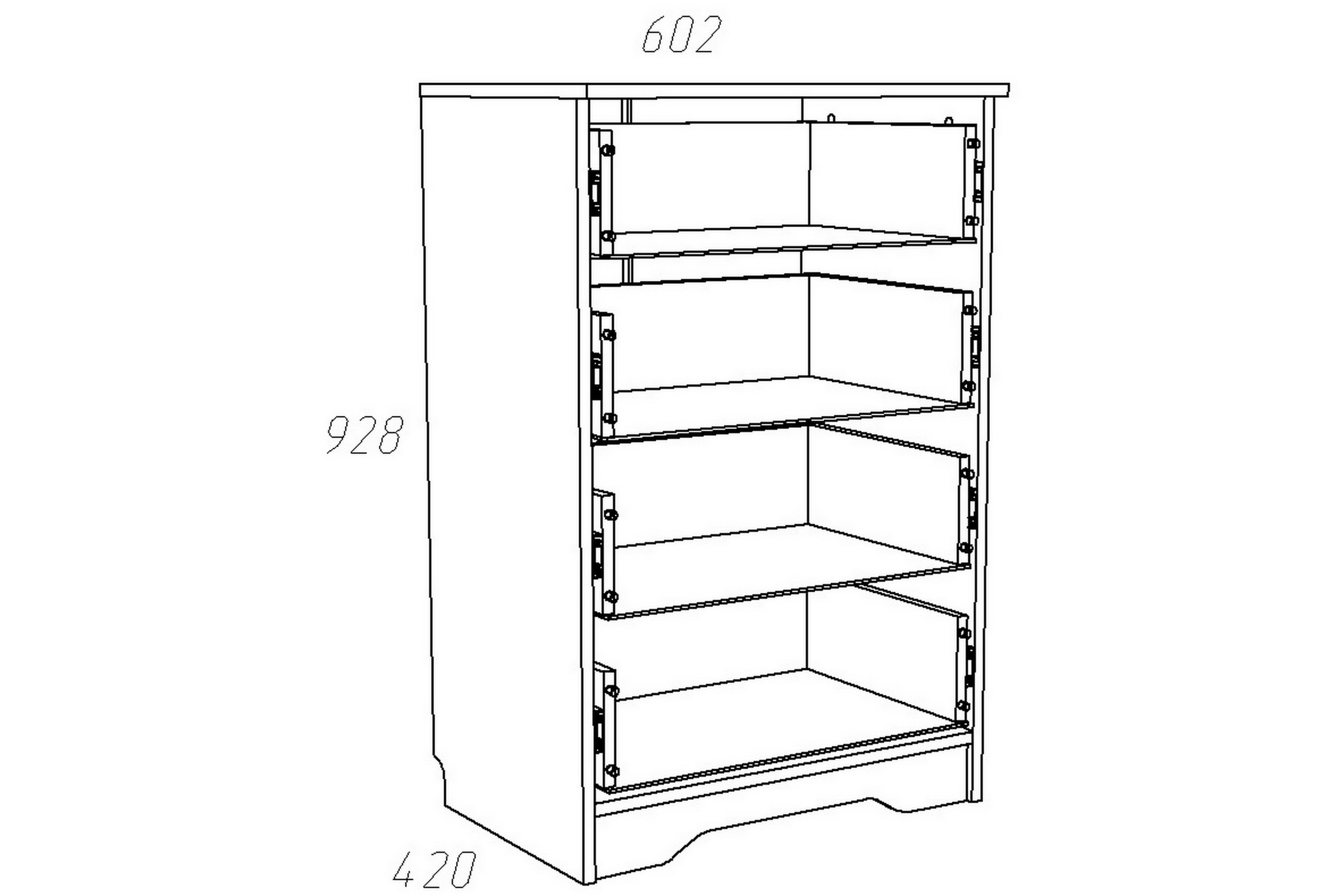 Размеры: Ш 602 x Г 420 x В 928