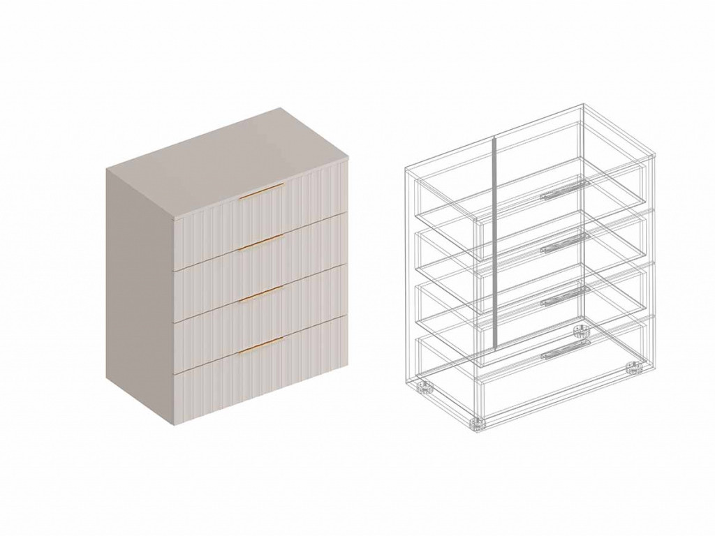 - Фасад: МДФ с фрезеровкой, плёнка ПВХ Софт Сантьяго, толщина 320-350 микрон МКМ (с праймером)