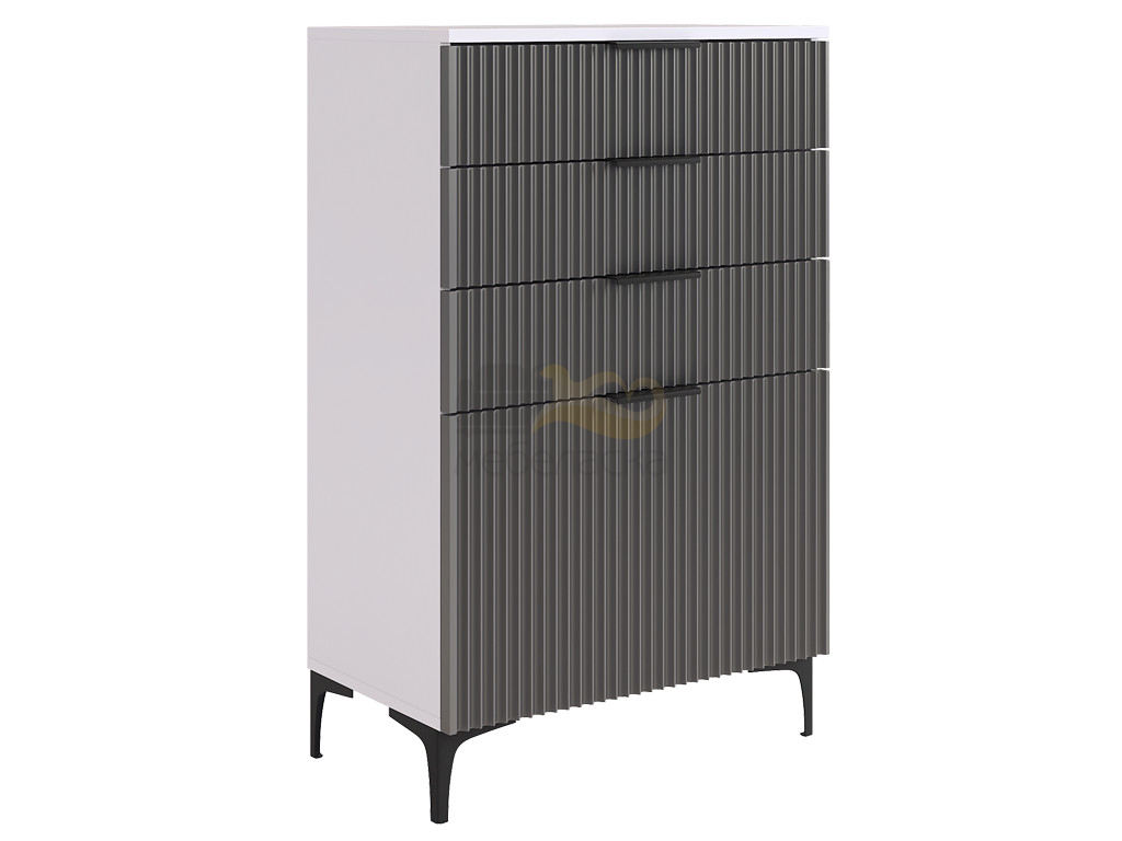 Комод «Зефир» — идеальное решение для детской и гостиной комнат. Он оснащён выкатными ящиками и откидной секцией, обеспечивая максимальный комфорт и удобство использования. Фасады украшены изящной фрезеровкой, которая придаёт изделию неповторимый шарм и элегантность.