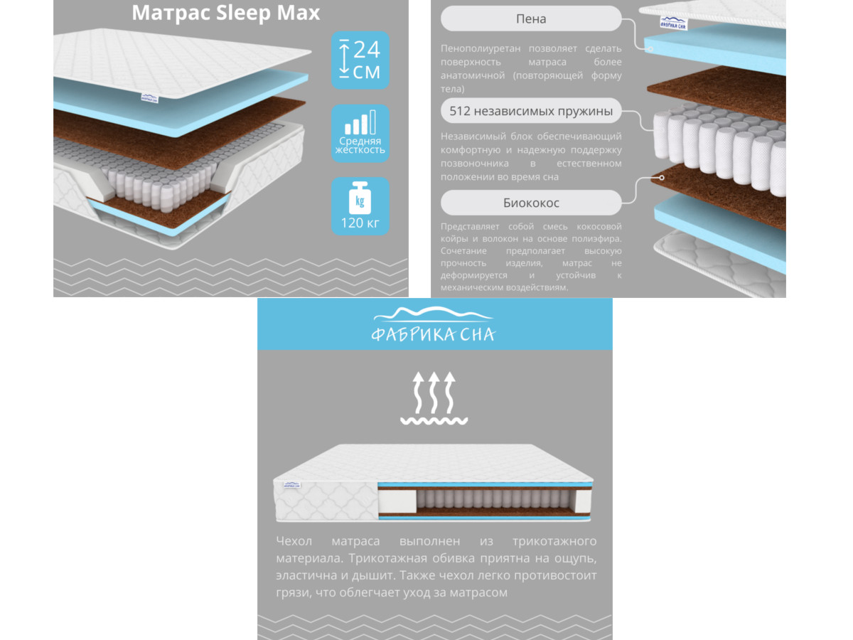 - Матрас Sleep Max шириной 1600 мм