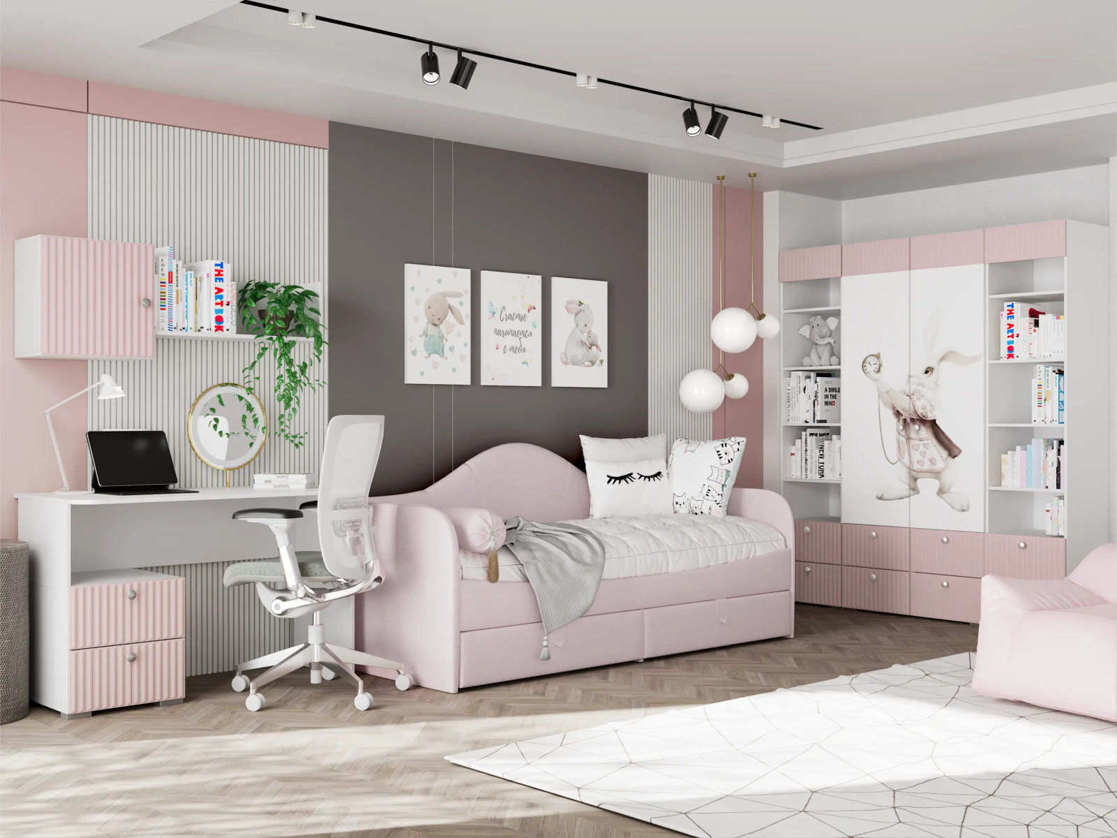- ПМ-332.18 Кровать с мягкой обивкой с 2мя ящ. (сп/м 900*2000мм), велюр розовый НАСТИЛ