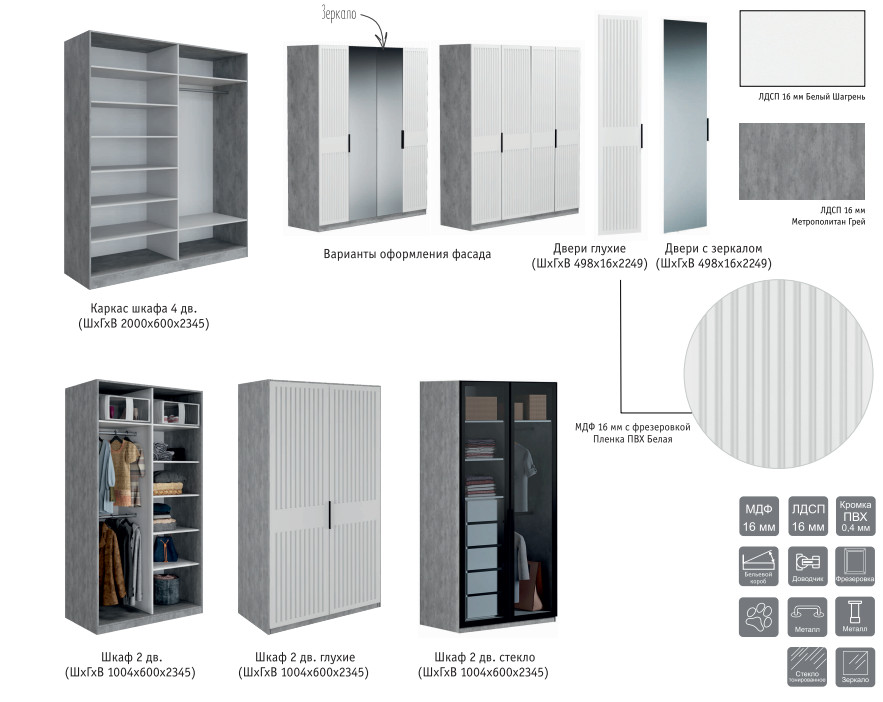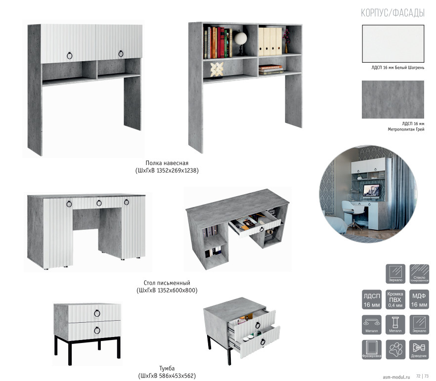 Цвет: ЛДСП Метрополитан Грей/МДФ Белый