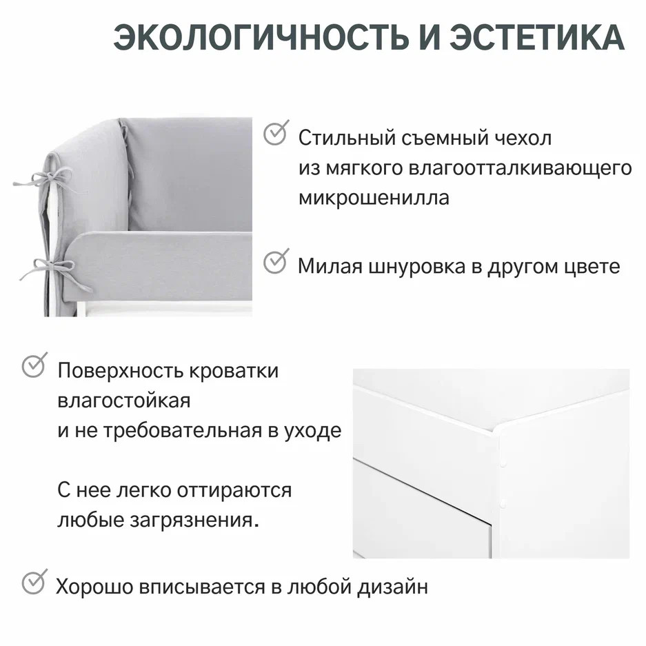Чтобы не бояться, что ребенок упадет с кроватки, можно приобрести дополнительный съемный бортик.