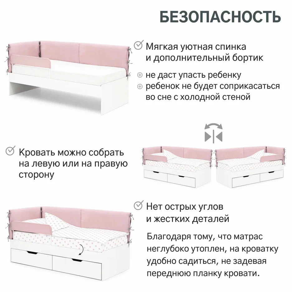 Детская мягкая кровать Denvas с бортиком пыльная роза