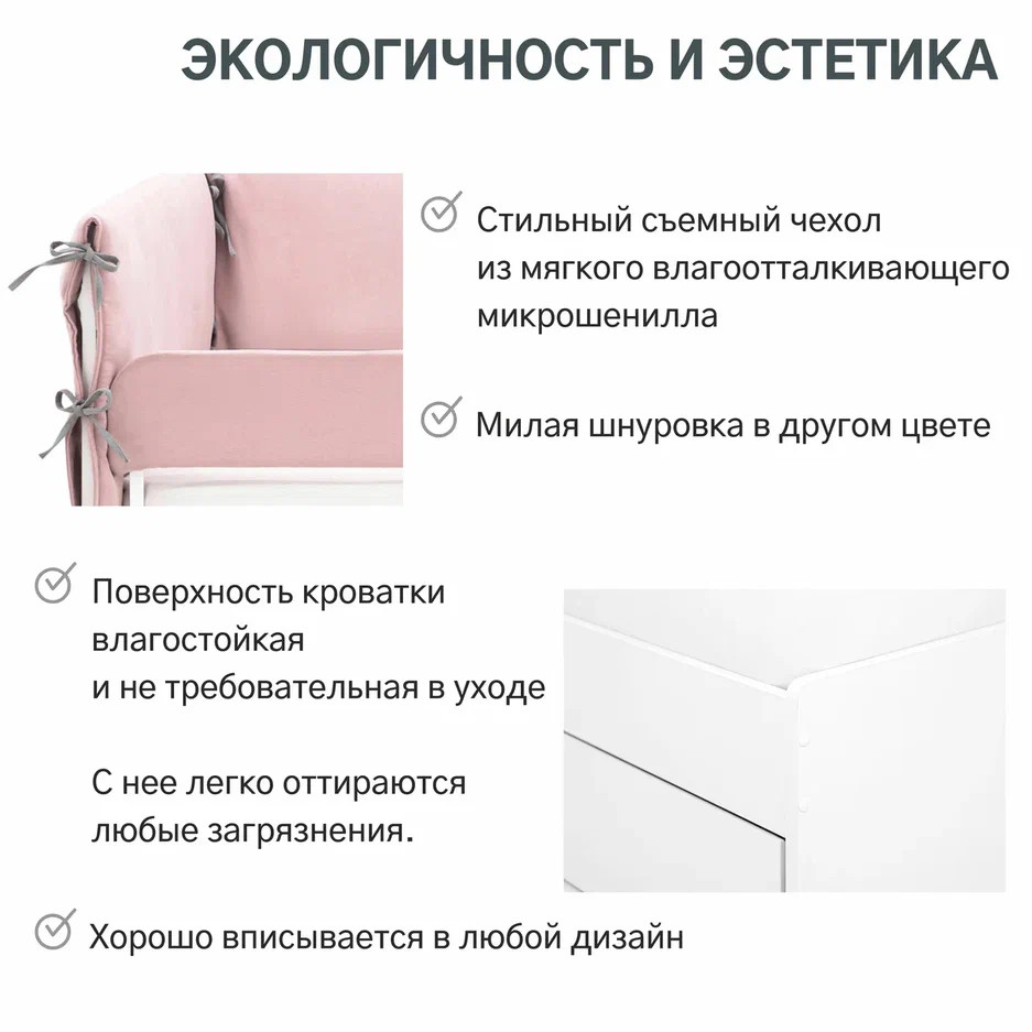 Чтобы не бояться, что ребенок упадет с кроватки, можно приобрести дополнительный съемный бортик.