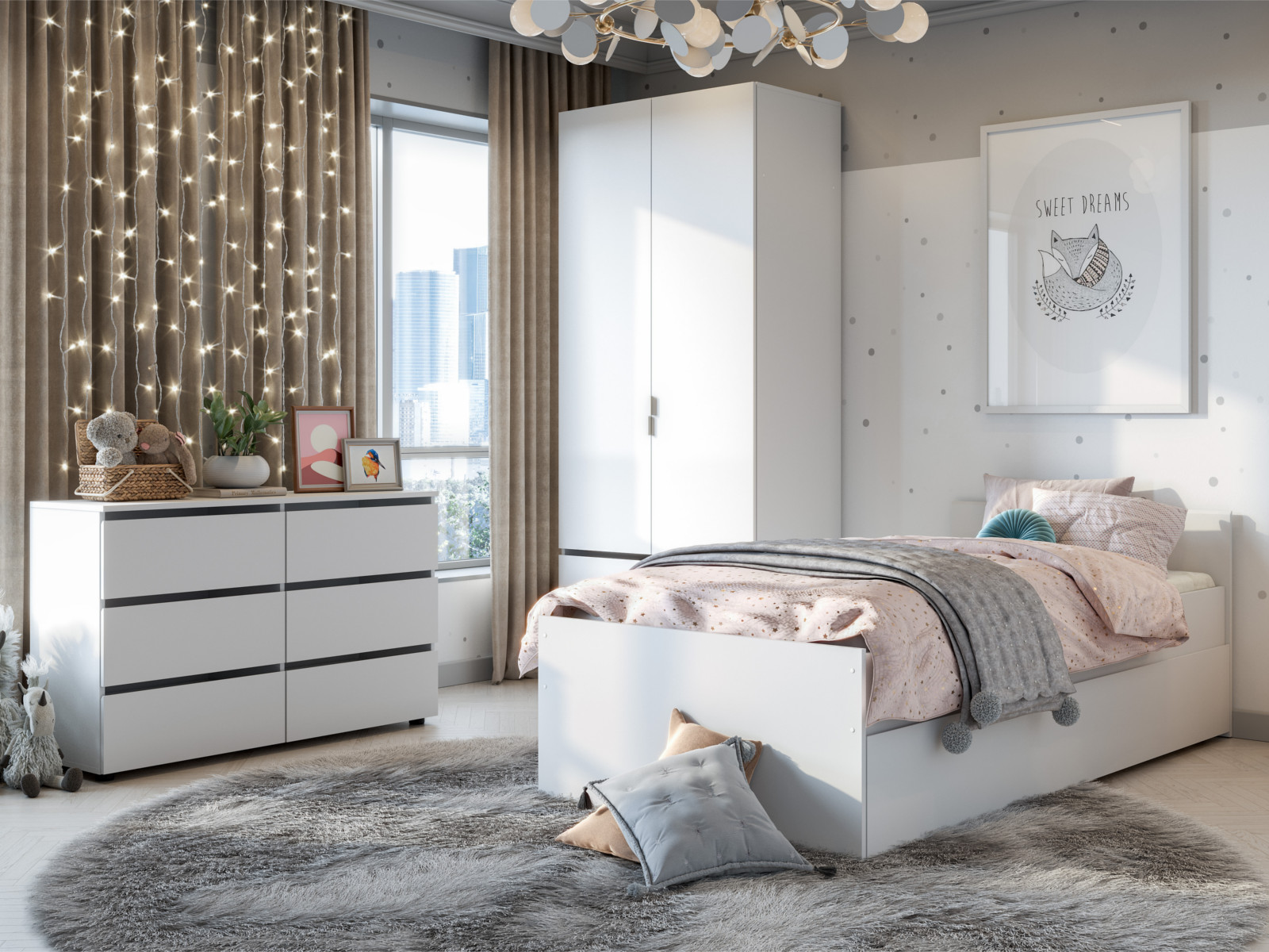 - Детская Токио со шкафом Белый текстурный