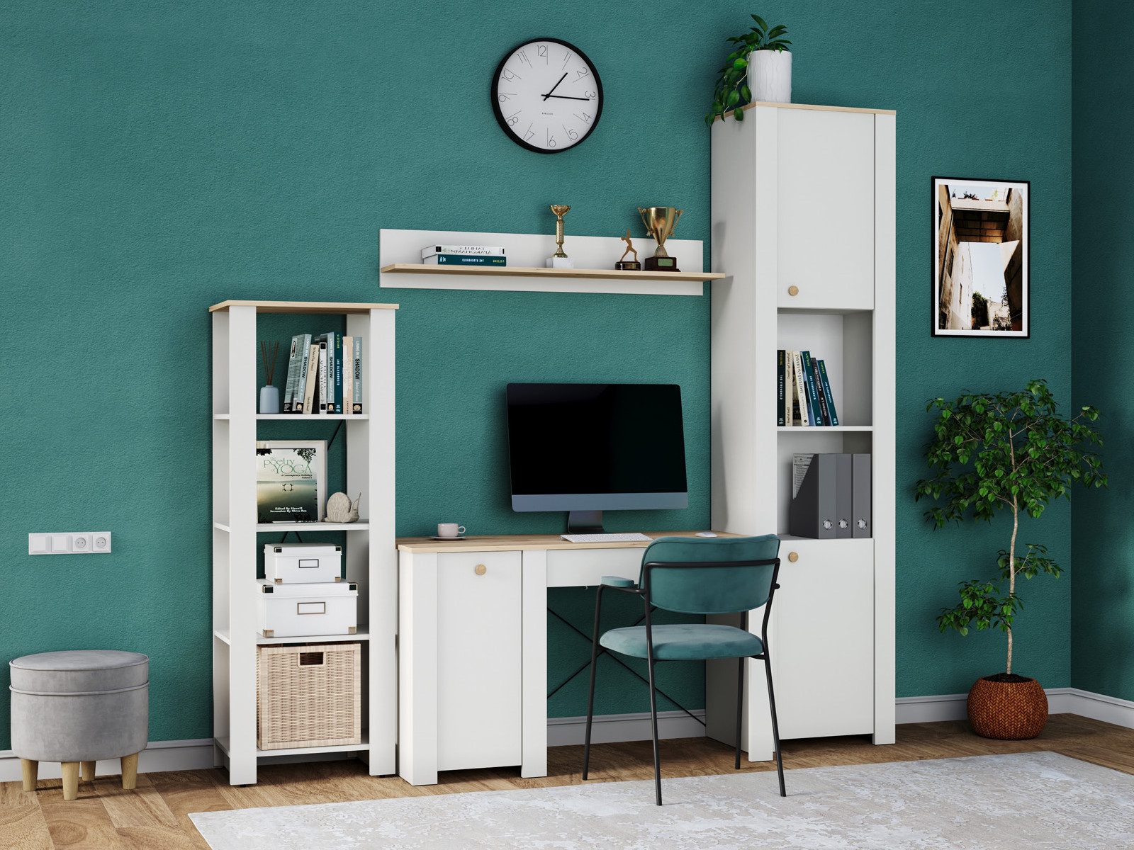 Цена за комплект: Стеллаж 13.354, Стол письменный 12.154, Полка 16.485, Шкаф торцевой 16.306