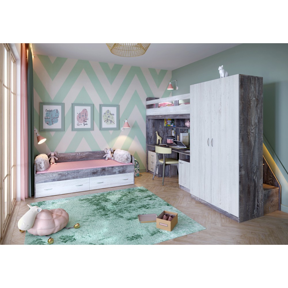 Цена указана за комплектацию на главном фото (каркас, шкаф, кровать нижняя, стол, лестница)