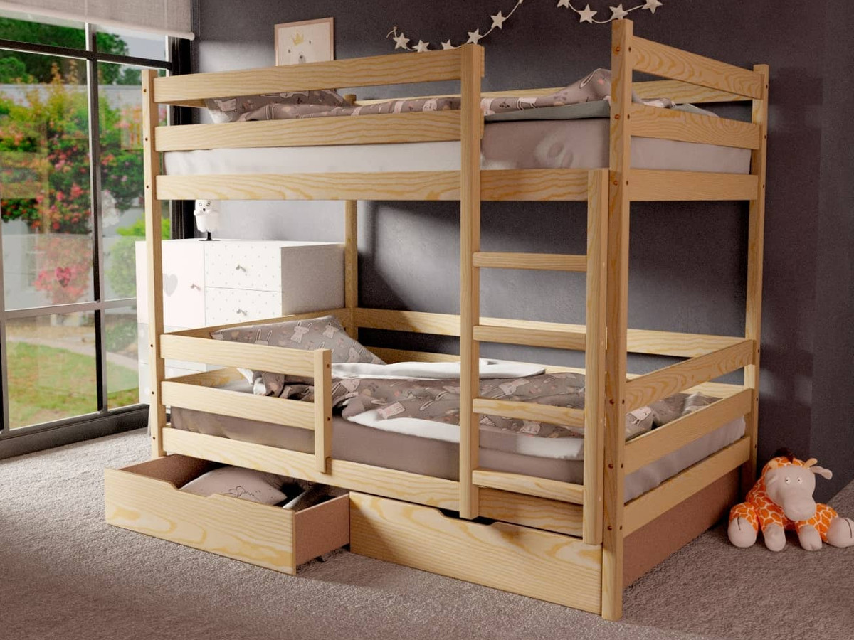 Двухъярусная кровать без крыши без покраски 80х160 см с ящиками