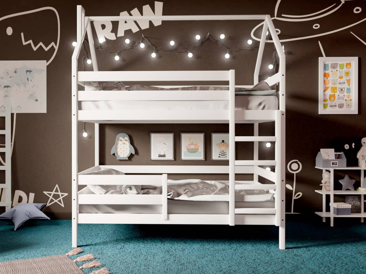 - Двухъярусная кровать-домик белый 80х190 см