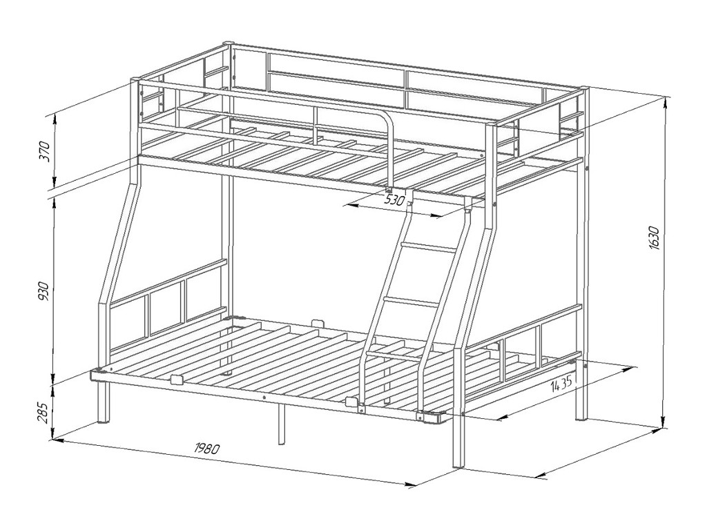 Ширина нижнего спального места: 1400х1900 мм