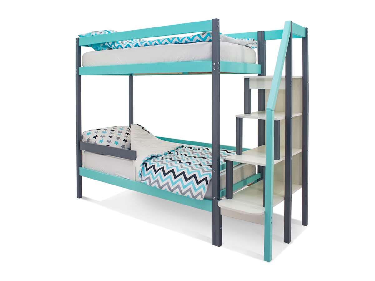 - Двухъярусная кровать Svogen с бортиком графит-мятный