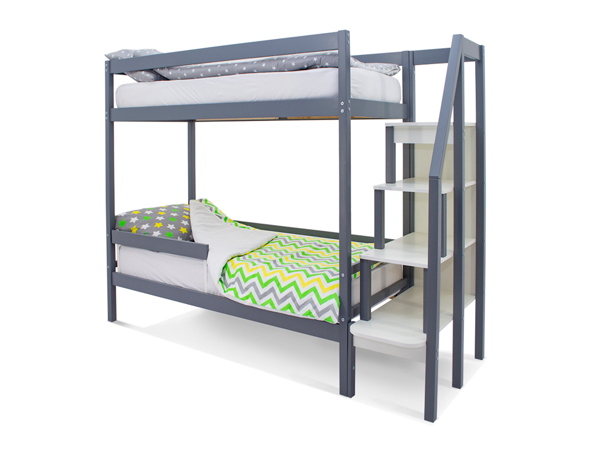 - Двухъярусная кровать Svogen с бортиком графит