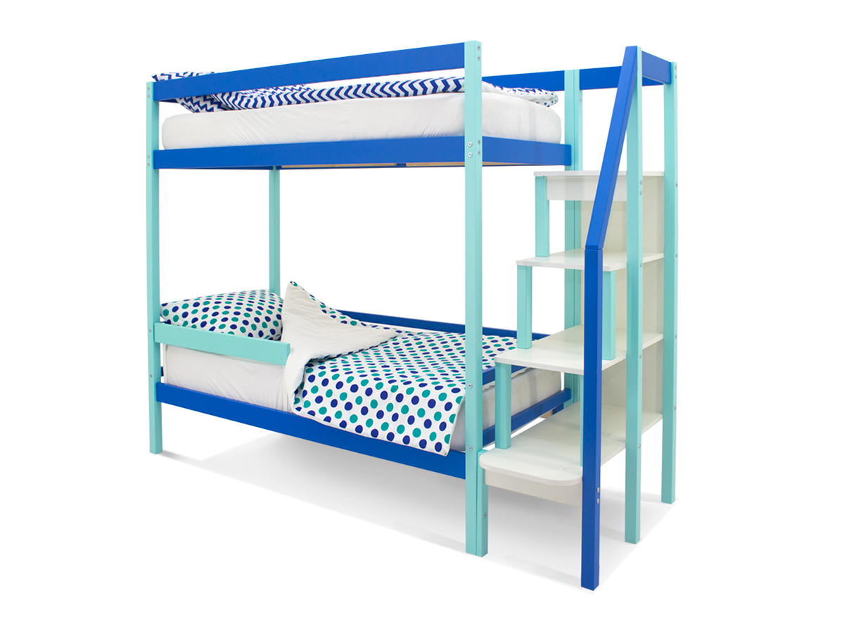 Двухъярусная кровать Svogen с бортиком мятно-синий