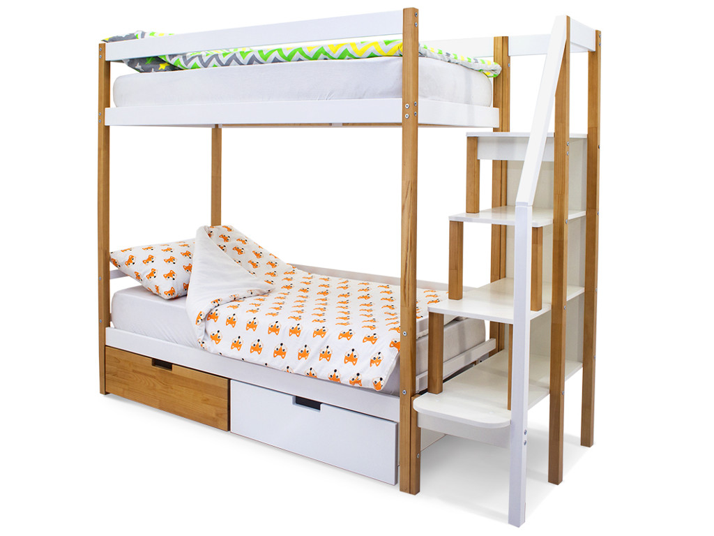 Двухъярусная кровать Svogen с ящиками дерево-белый