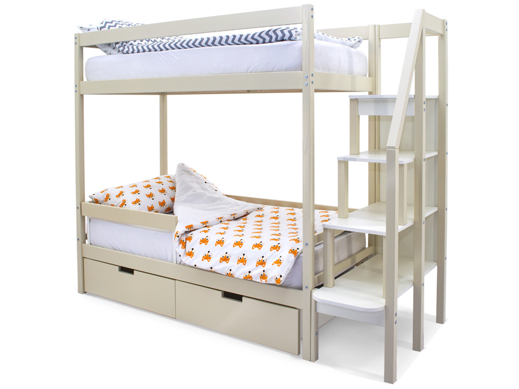 Двухъярусная кровать Svogen с ящиками и бортиком бежевый