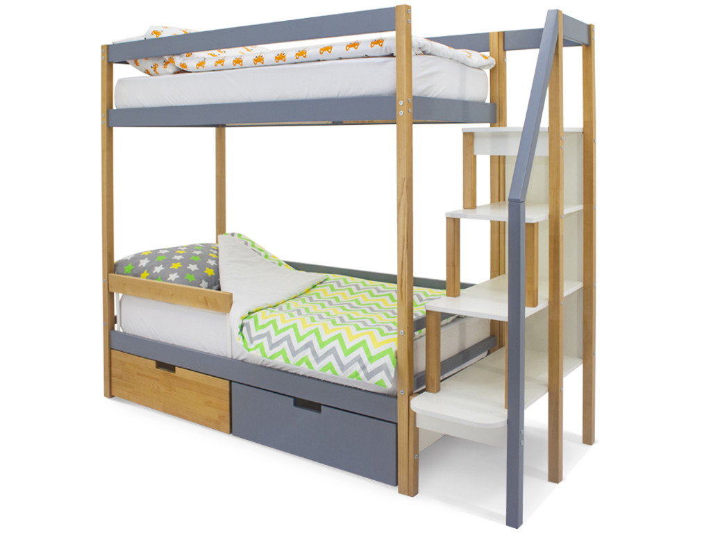 Двухъярусная кровать Svogen с ящиками и бортиком дерево-графит