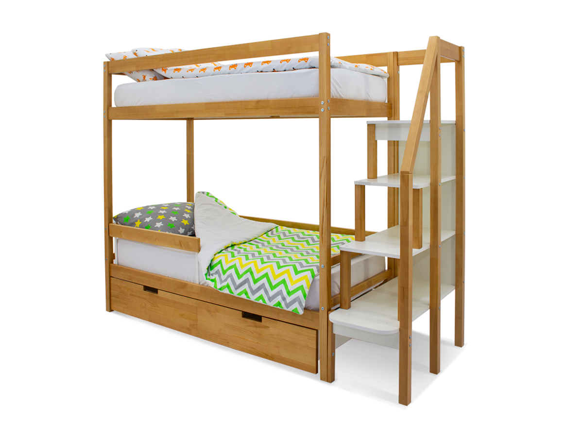 В комплекте: кровать + 2 ящика + бортик (нижний)