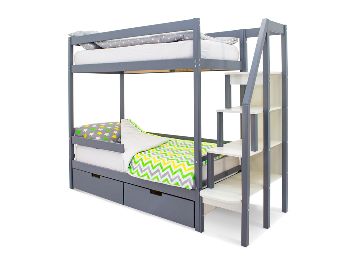 Двухъярусная кровать Svogen с ящиками и бортиком графит