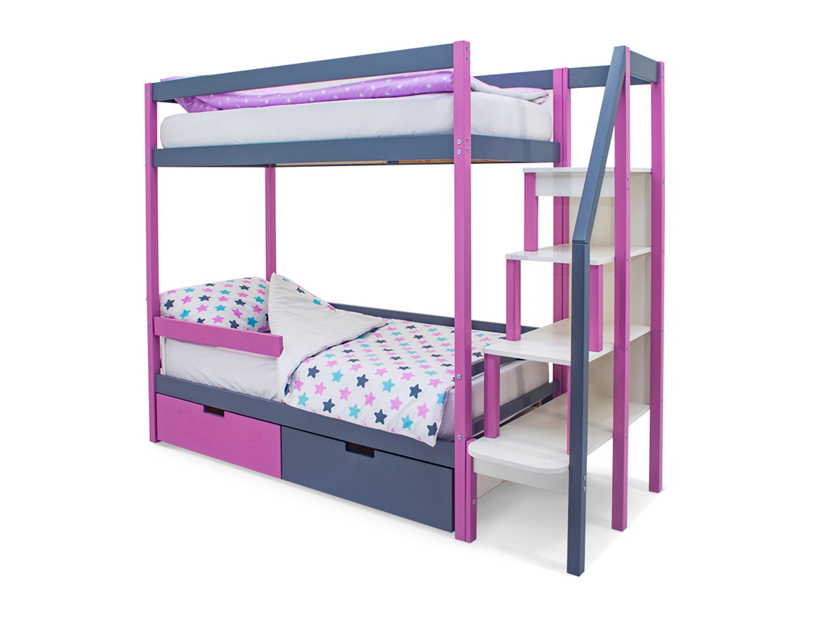 Двухъярусная кровать Svogen с ящиками и бортиком лаванда-графит