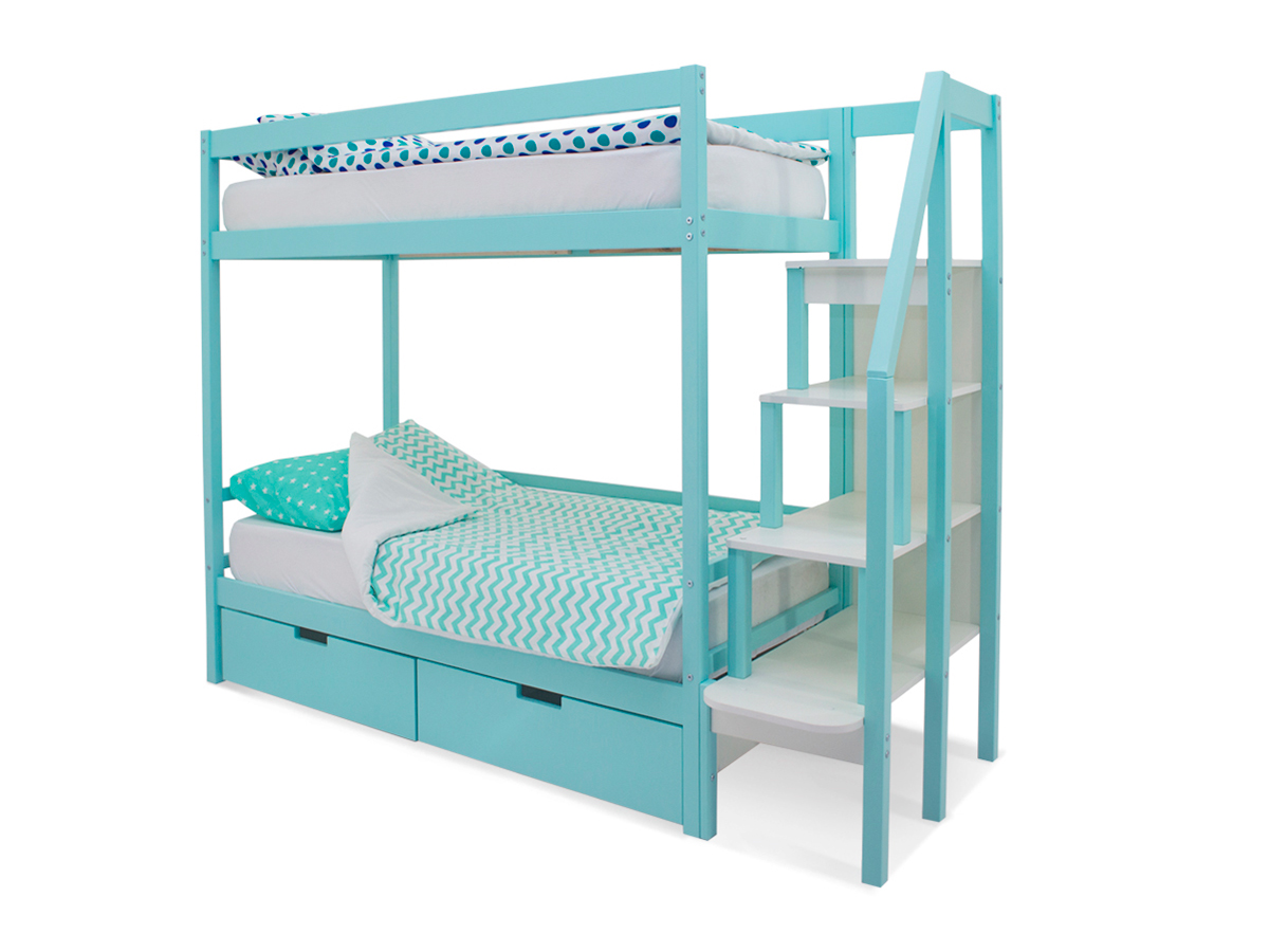 Двухъярусная кровать Svogen с ящиками мятный