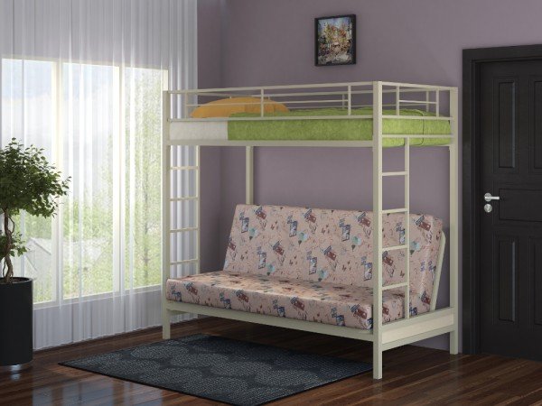 - Двухъярусная кровать с диваном Мадлен слоновая кость