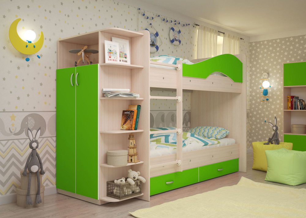 - Двухъярусная кровать со шкафом Мая щиты лайм