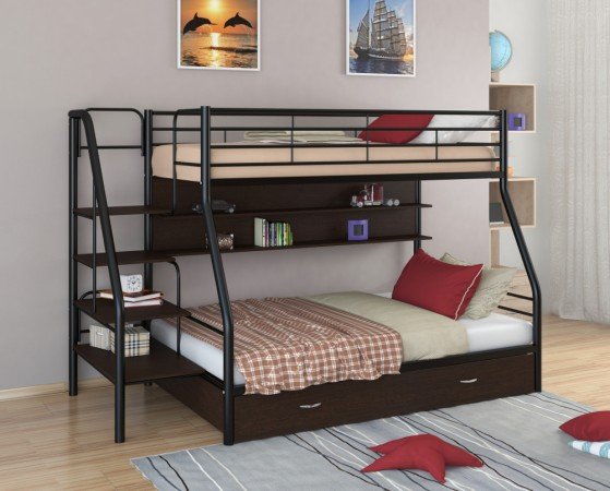 - Двухъярусная кровать Толедо 1 ПЯ черный венге