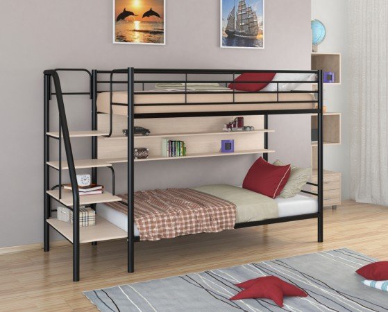 - Двухъярусная кровать Толедо П черный/молочный