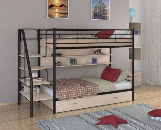 - Двухъярусная кровать Толедо ПЯ черный дуб молочный