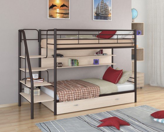 - Двухъярусная кровать Толедо ПЯ коричневый дуб молочный