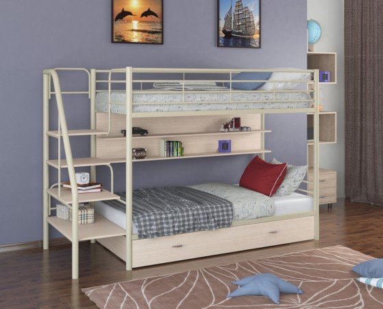 - Двухъярусная кровать Толедо ПЯ слоновая кость дуб молочный