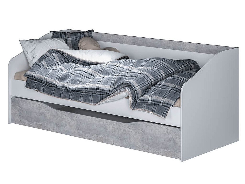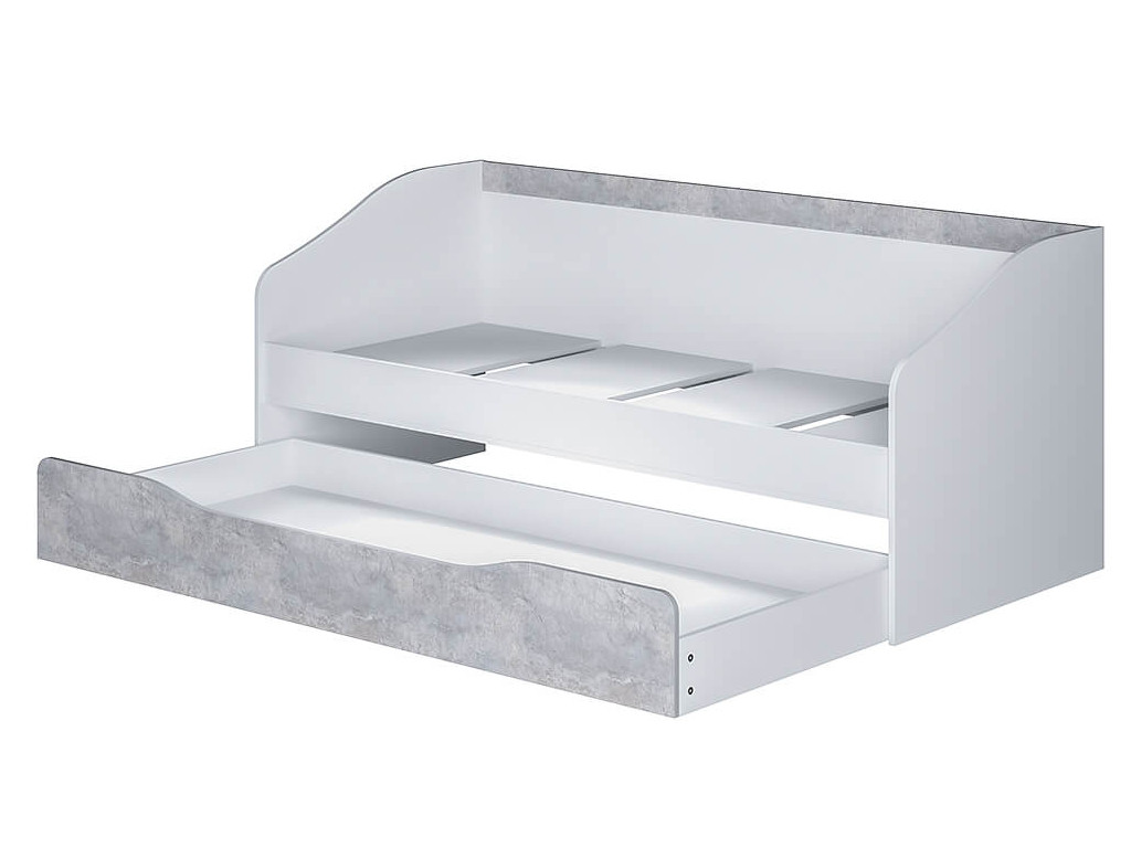 Выдвижной ящик можно использовать как второе спальное место 1860*800 мм; выдвигается на роликовых опорах, установленных на дне кровати.