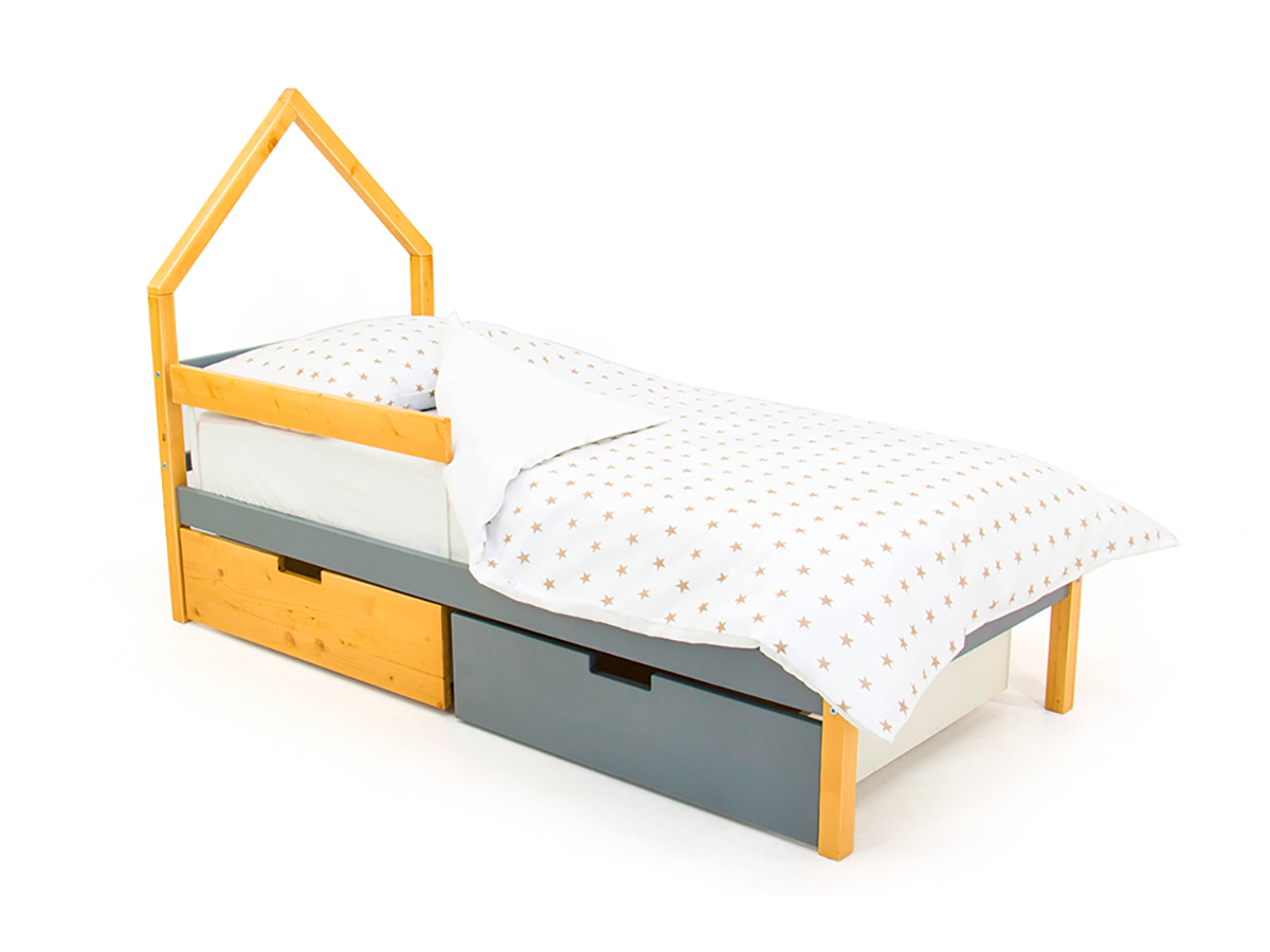- Кровать-домик мини Svogen с ящиками и бортиком дерево-графит
