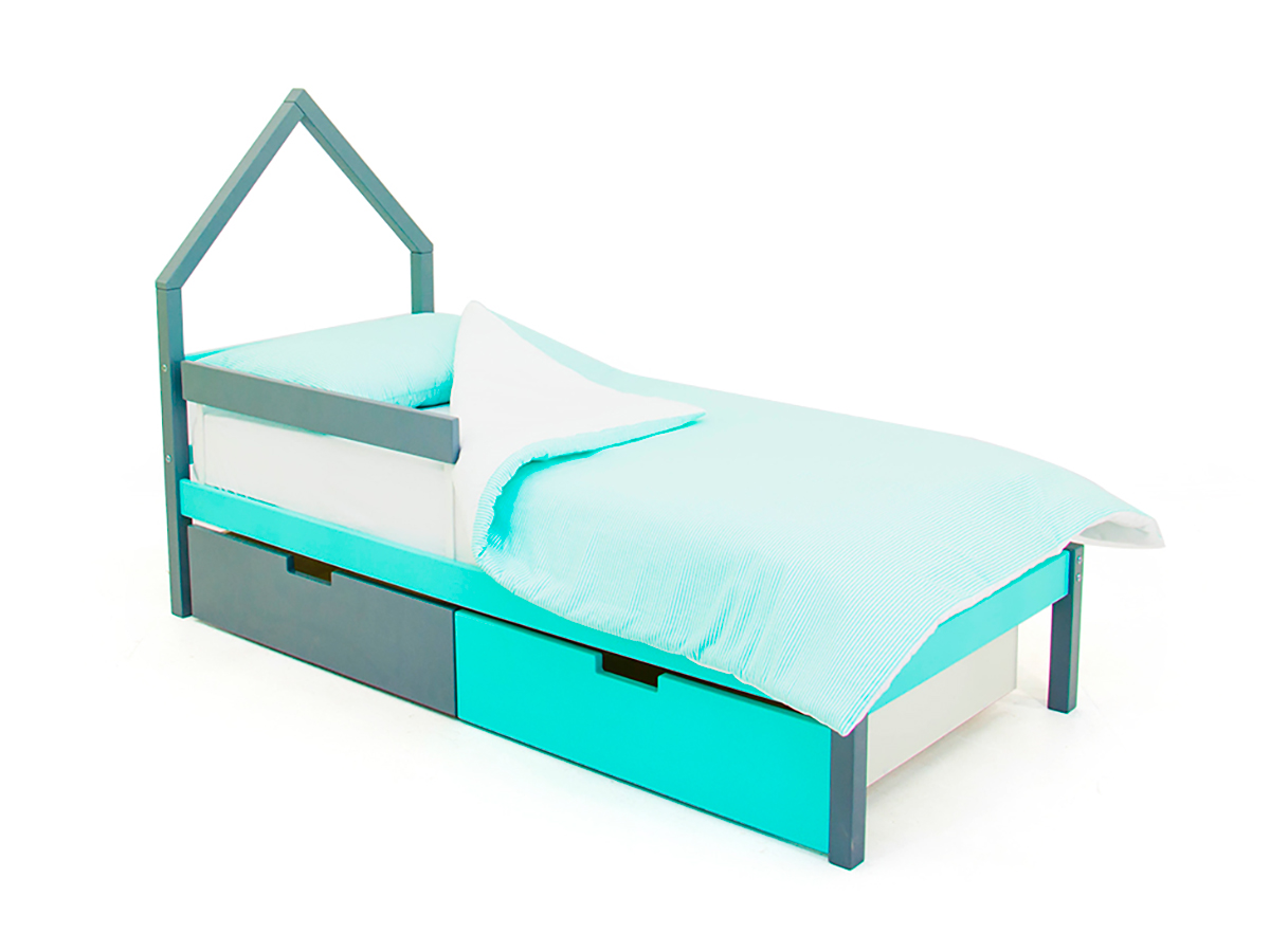 - Кровать-домик мини Svogen с ящиками и бортиком графит-мятный
