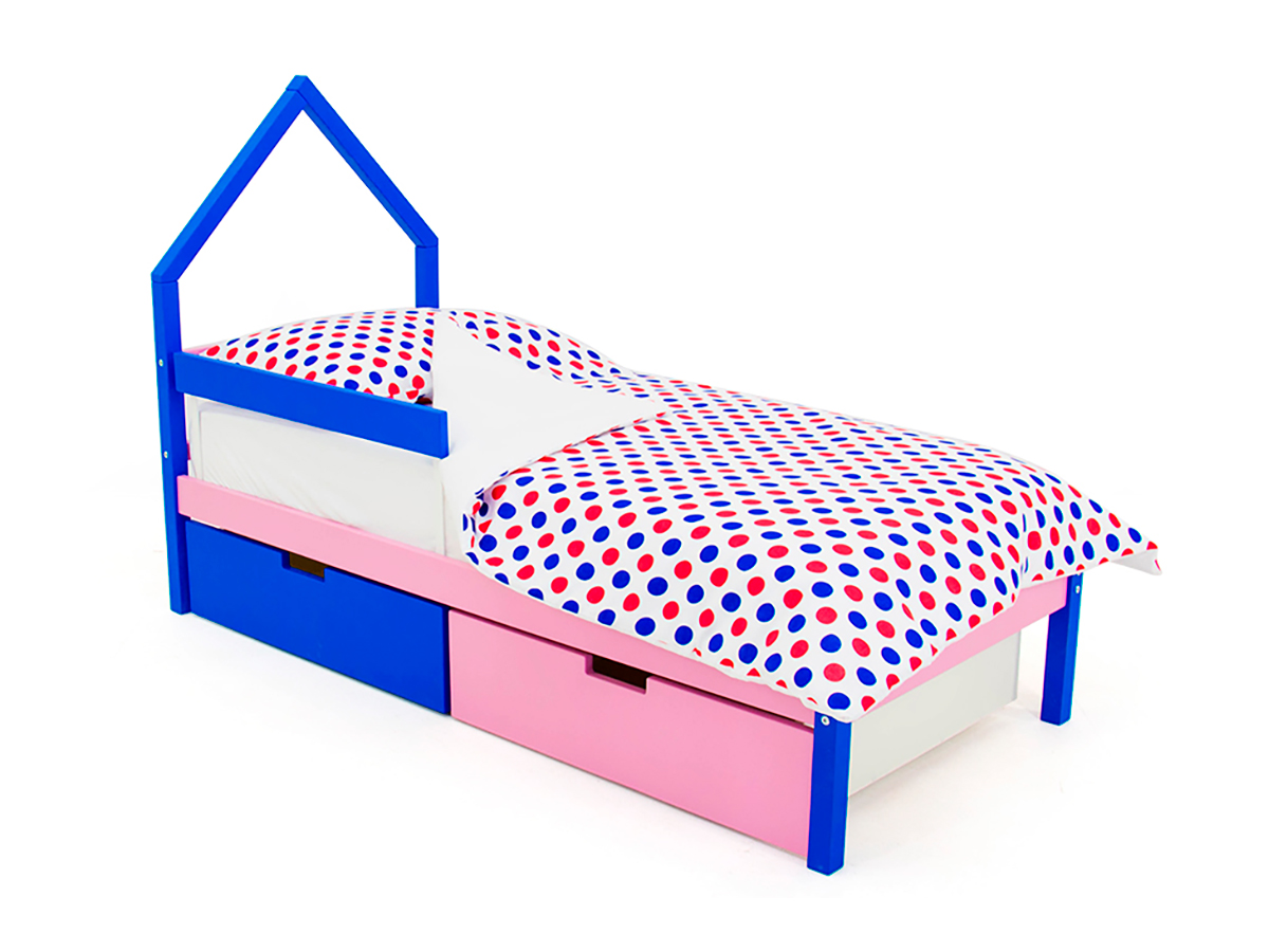 - Кровать-домик мини Svogen с ящиками и бортиком синий-лаванда