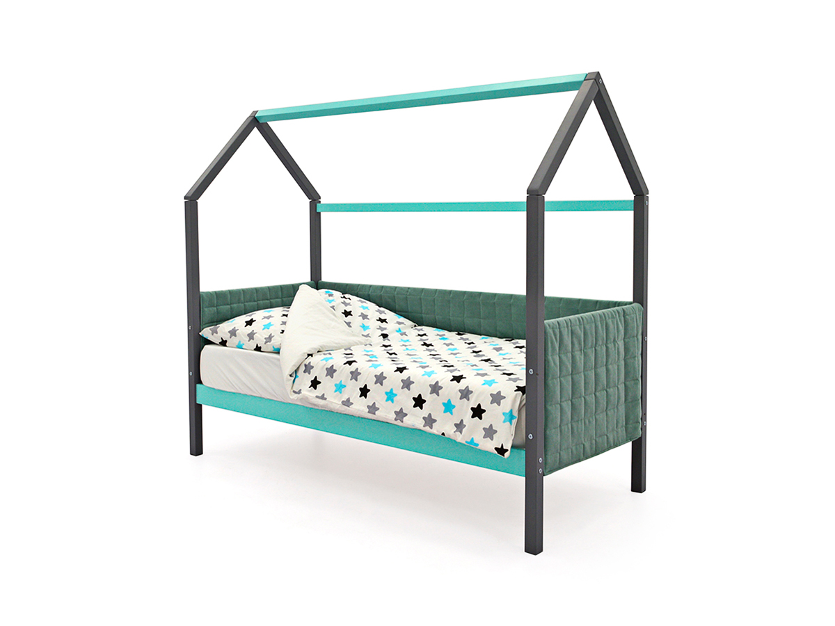 - Кровать-домик мягкий Svogen графит-мятный
