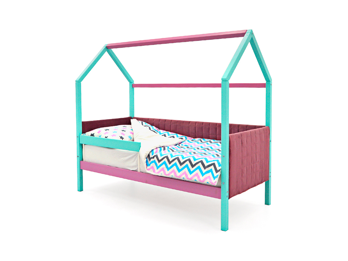 - Кровать-домик мягкий Svogen с бортиком мятный-лаванда