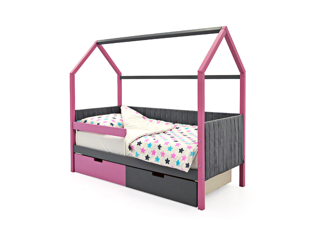 Кровать-домик мягкий Svogen с ящиками и бортиком лаванда-графит